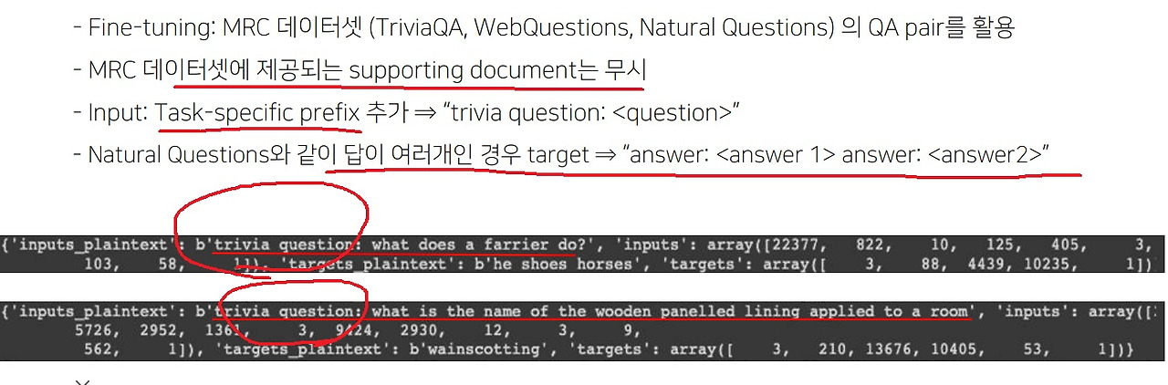 input앞에 데이터셋의 이름?인 trivia question같이 task-specific prefix를 붙여줘야함