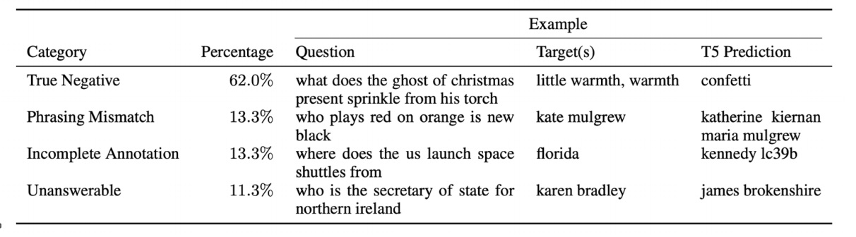 T5가 낸 대답을 분석해보니 EM기준으로는 오답이겠지만 사람이 직접 채점해보면 오답이라고 보기 어려운 대답들이 생각보다 많았다.