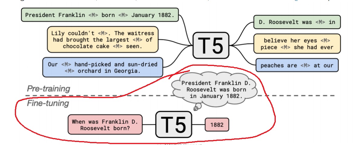 fine-tuning 과정에서 질문을 주면 T5가 가지고 있는 지식을 바탕으로 바로 답변을 내고 있는 모습