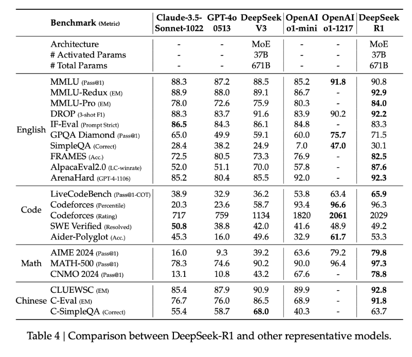 특히, DeepSeek-R1은 수학, 코딩, 장문 맥락 의존형 QA 작업에서 탁월한 성능을 보여주었습니다.