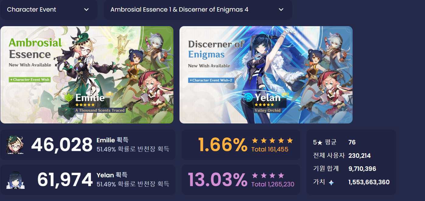 하지만 업데이트 이후 사설 가챠 통계 사이트인 페이몬 모에에서는 기존과 동일한 확률로 집계되고 있었다.
