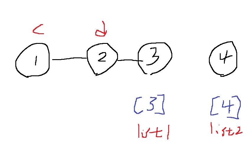 예를 들어 위와 같이 1-2를 끊어서 1을 list_one, 2를 list_two에 먼저 넣었음