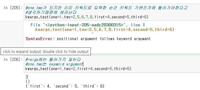 one,two라는 것이 인자로 있다고하더라도 이미 keyword로 입력해버리면 keyword 가변인자라고 생각해버림