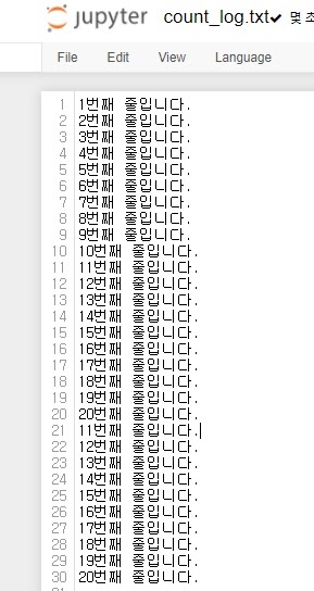 위 코드로 append모드('a' 모드)에서 글을 써내려가면