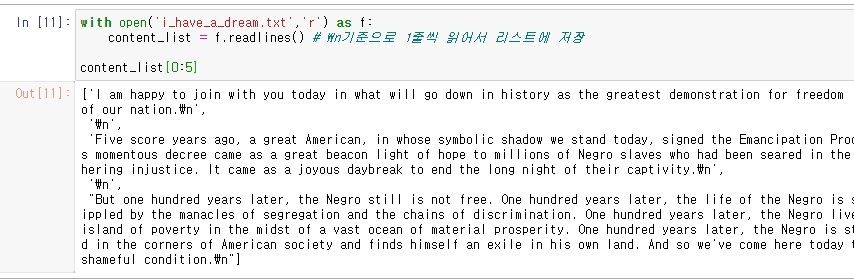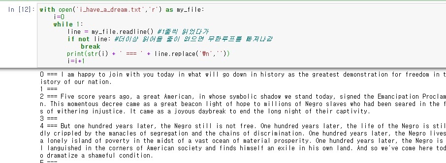 i_have_a_dream 파일을 읽기모드로 읽어 f라는 객체에 저장하여