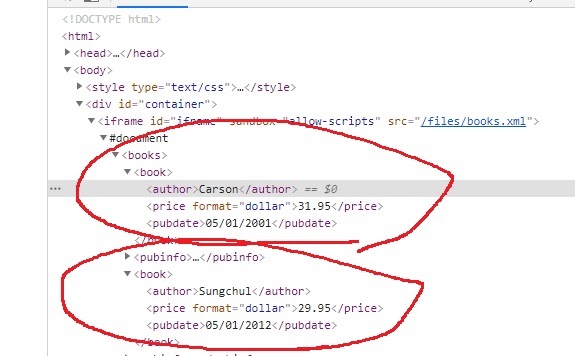 사람은 브라우저에서 이것을 다운받아 브라우저가 해석한 HTML,XML 결과를 보는 것