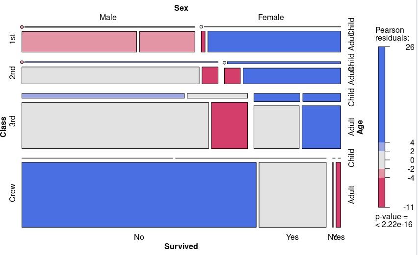 > mosaic(Titanic, shade=T, legend=T)