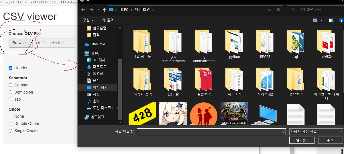 Browse 눌러서 파일을 업로드해서 확인