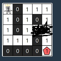 [[1,0,1,1,1],[1,0,1,0,1],[1,0,1,1,1],[1,1,1,0,1],[0,0,0,0,1]] 11 [[1,0,1,1,1],[1,0,1,0,1],[1,0,1,1,1],[1,1,1,0,0],[0,0,0,0,1]] -1