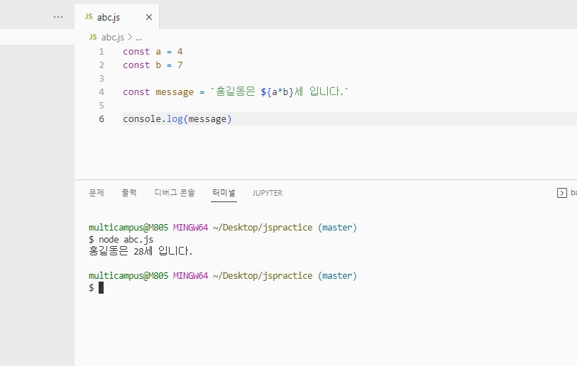 키보드 숫자 1 왼쪽에 ` `(backtick)으로 문자열을 나타내면 여러 기능을 사용할 수 있음