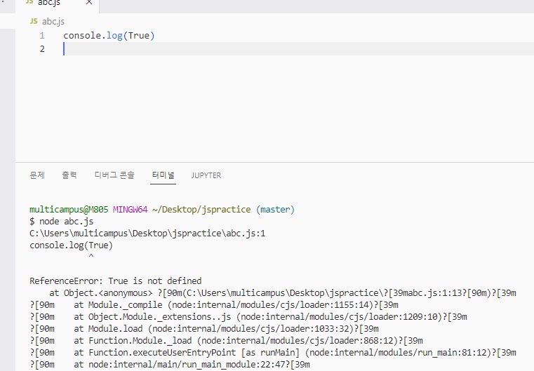 파이썬에서는 True, False로 썼지만.. 자바스크립트에서는 모두 소문자 true, false로 써야함