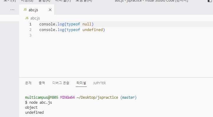 null은 object로 출력하고, undefined는 undefined로 출력함