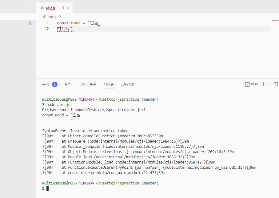 따옴표를 사용하는 경우 줄바꿈이 불가능하다