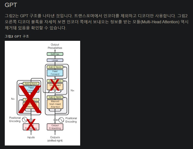 당연한건데 encoder가 없으니까 decoder에 encoder-decoder attention 모듈은 있을 이유가 없다
