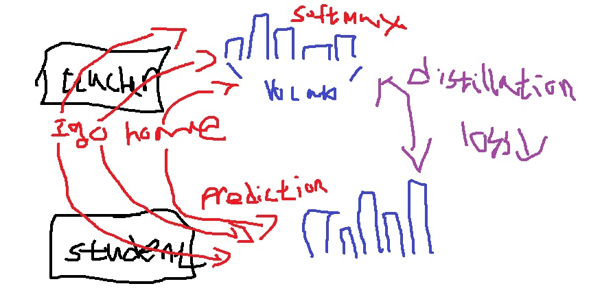 당연하지만 예측을 위한 ground truth probability가 있을텐데 teacher model이 구한 softmax probability distribution을 ground truth로 사용하여