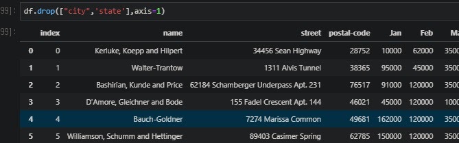 axis=1로 해서 city와 state에 해당하는 column을 제거함