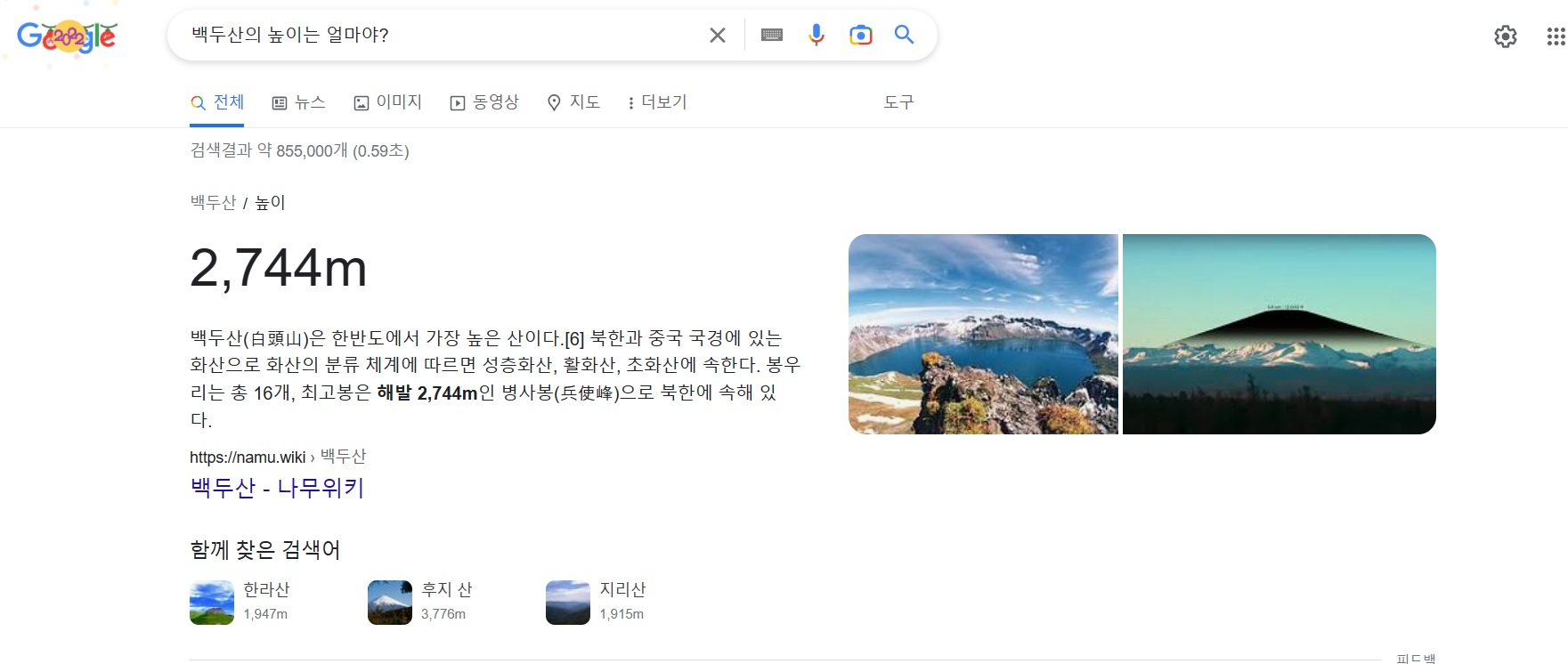 친구에게 "백두산의 높이는 얼마야?"라고 물었다고 가정해봅시다.
