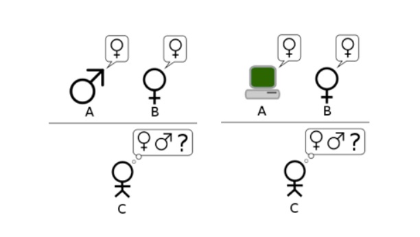 이 놀이는 일종의 사고 실험으로 이를 통과하면, 즉 기계가 인간을 잘 모방하면 기계가 지능을 지닌 것으로 판단하자는 거죠.