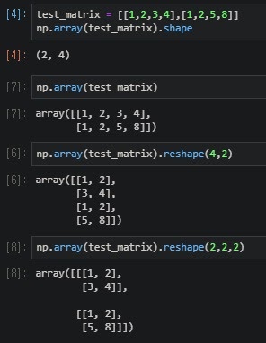 원소 개수는 바꾸지 않고 array의 shape를 변경함