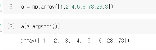 비슷하게 a[a.argsort()] 하면 sorting한 array를 반환