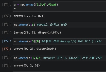 1-2) np.where(<condition>) condition이 True인 index만을 차례대로 array로 반환