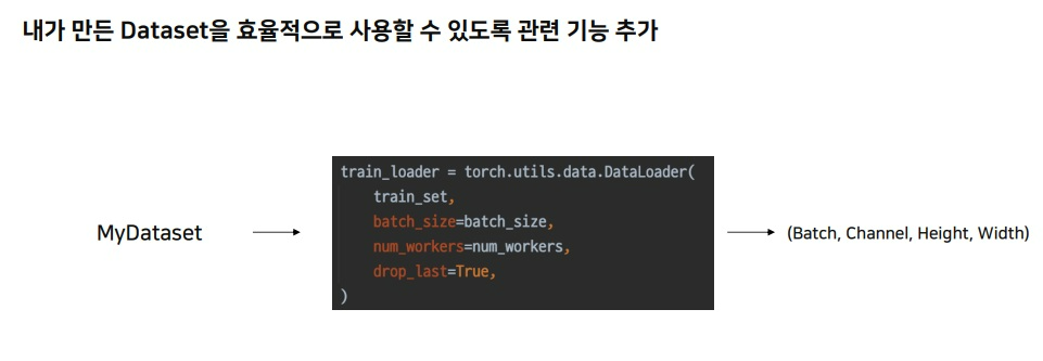 dataloader는 dataset class에서 data를 효율적으로 뽑아주도록 도와주는 기능