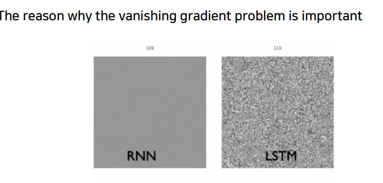 RNN이 gradient가 빠르게 소멸하여 학습이 안되는 동안에 LSTM은 여전히 학습이 진행되고 있다는 점이 중요하다.