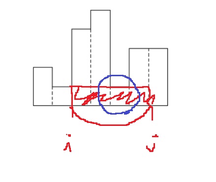 히스토그램이 높이 배열 A로 주어질 때, 어떤 구간 [i,j]까지 잡았을 경우, 만들 수 있는 직사각형은