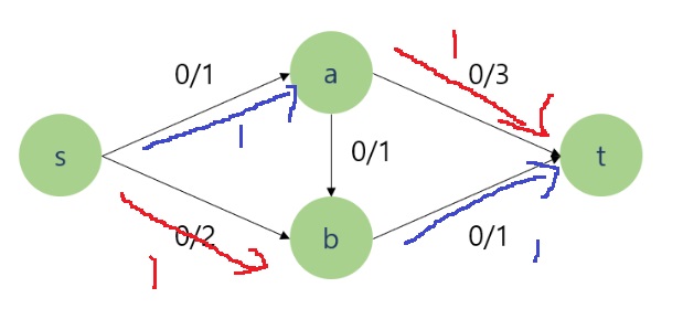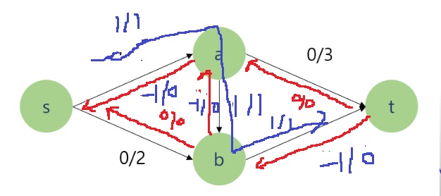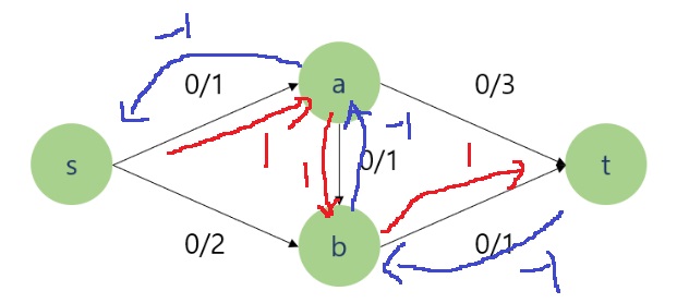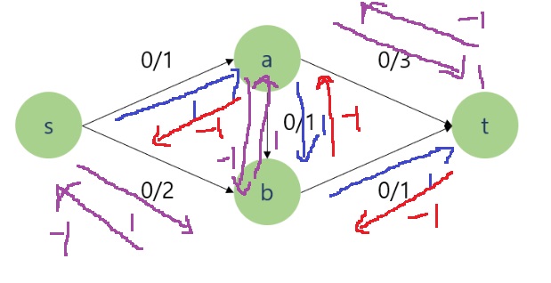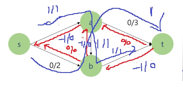 그러한 경로로 유량을 보내면 전체 유량이 증가하니, 그런 경로를 어떻게든 모두 찾고자 하는 알고리즘이다.
