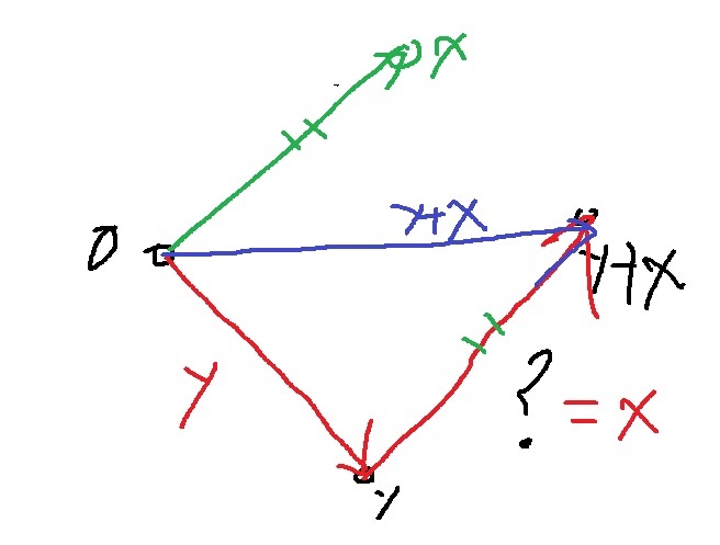 y로 가고 x방향으로 가서 원점과 이으면 그것이 y+x방향 벡터