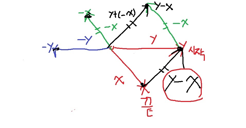 y-x는 뒤에 있는 (x)에서 앞에 있는 (y)을 이으면 된다.