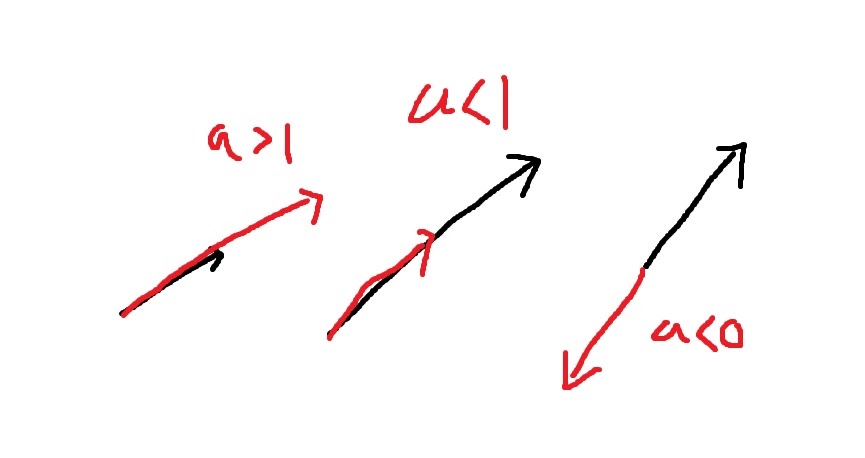 벡터에 숫자를 곱한 스칼라곱은 벡터의 길이만 변화시킨다.