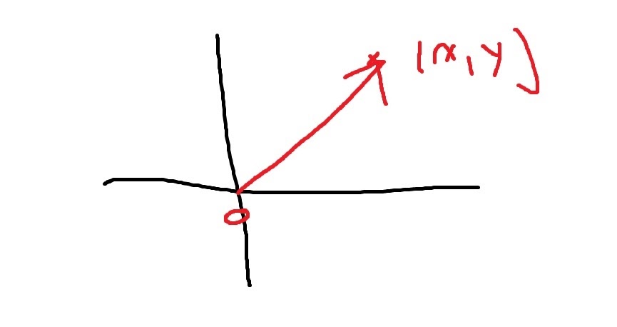 벡터 x는 x=0+x이므로 원점에서 x까지의 이동이라고 생각할 수 있다