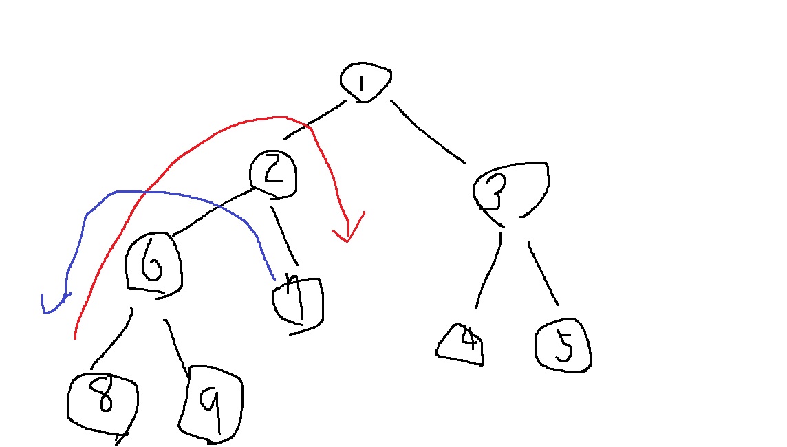 7번부터 시작해서 8번, 9번, 4번, 5번 노드로 탐색하면서 길이를 구하다가..
