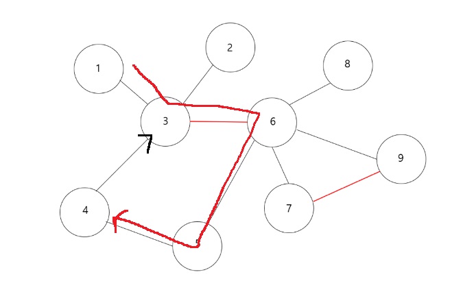 3번에서 4번으로 갈 수 없으므로 1 > 3 > 6 > 5 > 4로 돌아가야한다.