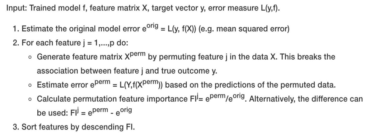 feature를 하나하나 순회하면서 데이터를 셔플링하여 model의 에러를 측정하여 섞지 않았을 때 비해 error가 얼마나 차이가 나는지 보고
