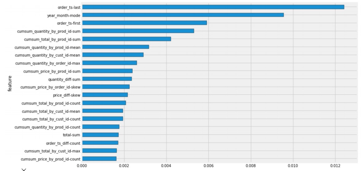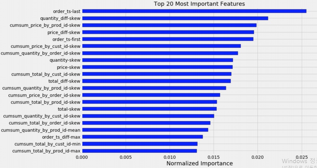 feature importance를 계산한 것을 보면 LightGBM과는 조금 다르다.. 모델 특성이 다르기 때문에 어떻게 보는지도 다르겠지
