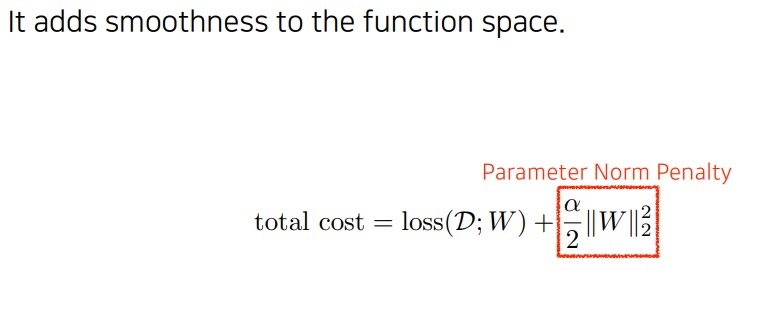 Parameter norm penalty는 네트워크의 parameter가 크기면에서 너무 커지지 않았으면 하는 바람에서 나온 것