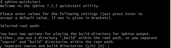 다음 빌드를 위해 sphinx-quickstart를 입력