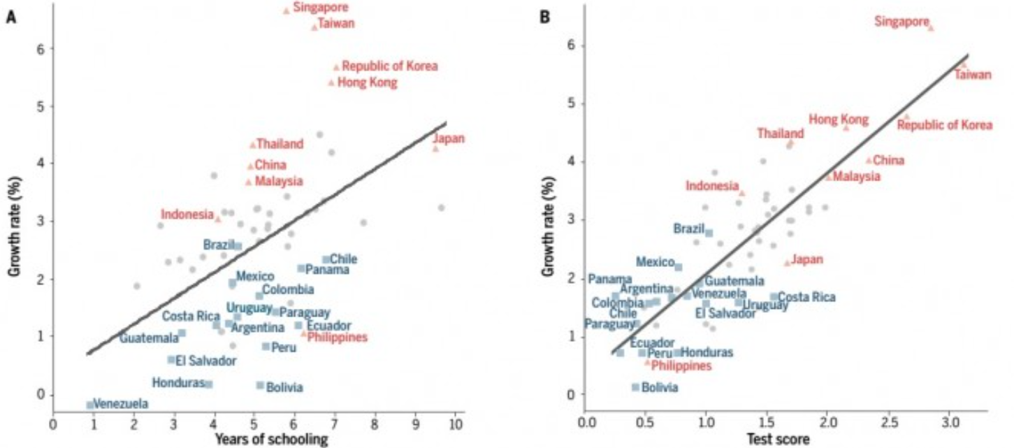 교육 정도가 높을수록 성장률도 높다는 주장이다.