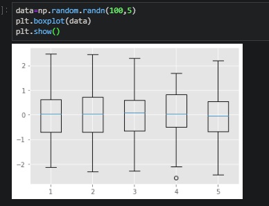 plt.boxplot() 데이터의 boxplot을 그려줌