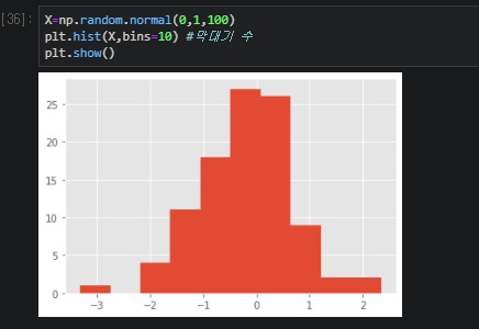 plt.hist() 은 히스토그램