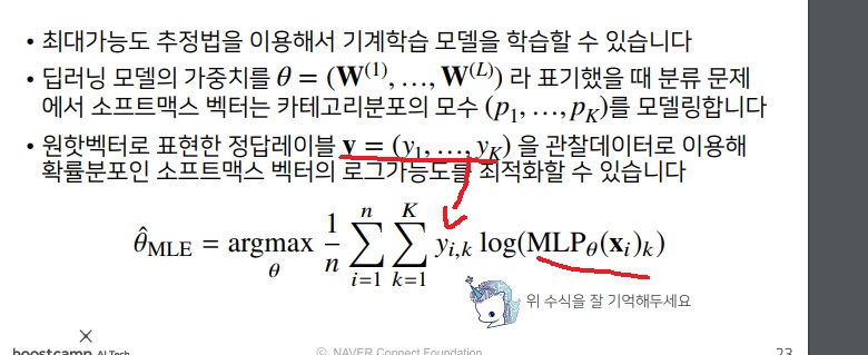 최대가능도추정량을 구하는 식이 크로스 엔트로피를 최소화하는 문제와 동일하다는 사실을 알 수 있다.
