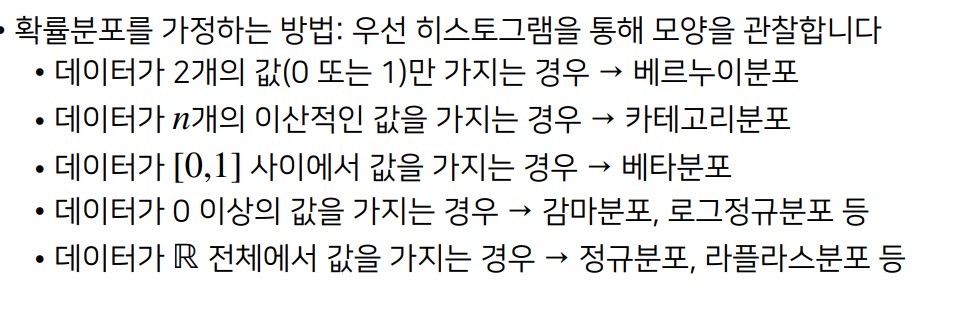 데이터의 확률분포를 가정했다면 분포의 모수를 추정해야한다.
