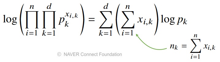 로그함수의 성질인 곱을 ‘합으로 바꿔주는 성질’을 이용하여 로그가능도함수를 최적화한다.