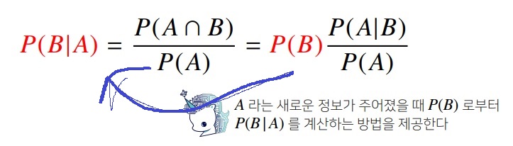 베이즈 정리는 조건부확률을 이용해 정보를 갱신하는 방법을 알려준다