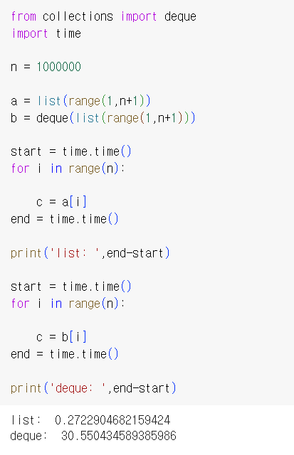이는 python의 deque가 이중연결리스트라서 그렇다