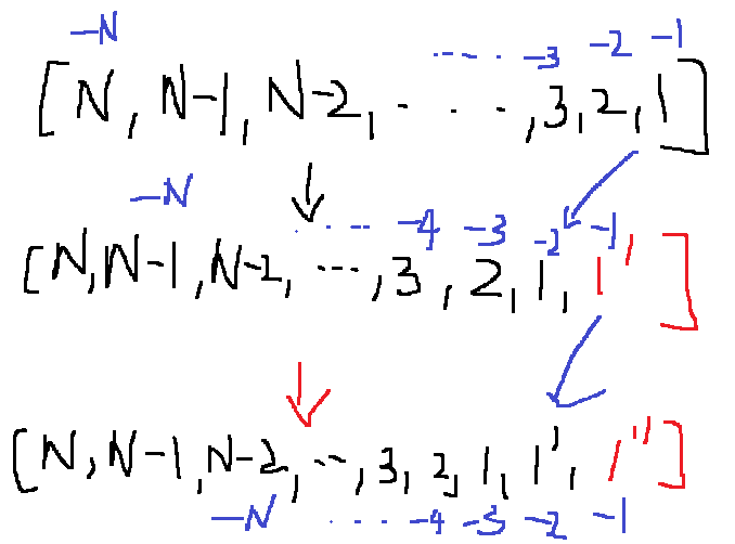 처음에 이렇게 [N,N-1,N-2,...,3,2,1] 역으로 배열을 배치해두고....