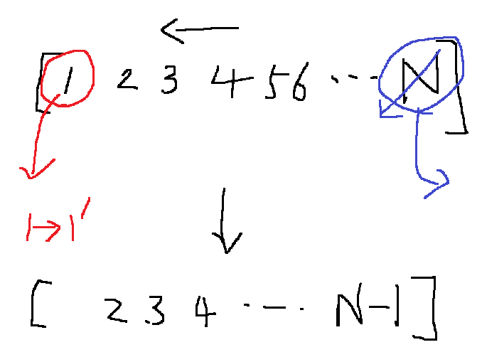 [2,3,4,..,N]에서 1번을 앞에 다시 넣어봤자.. 그냥 원래대로 [1,2,3,..,N]이 된다.