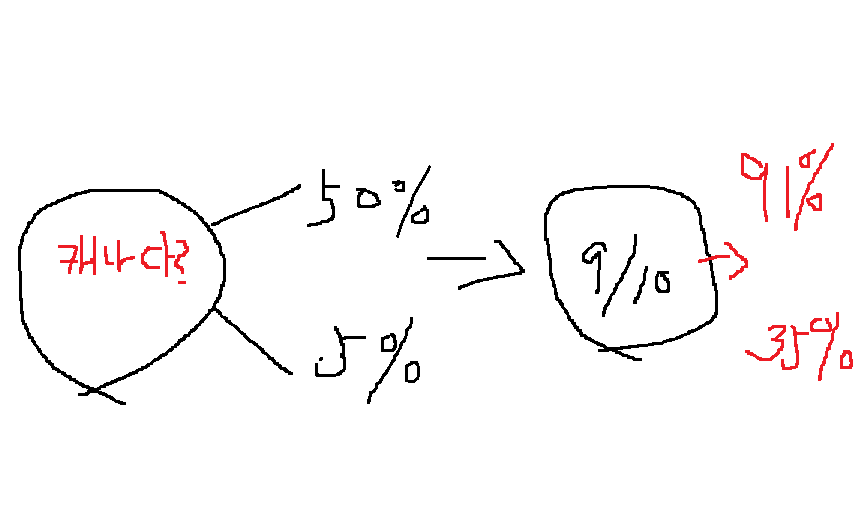 2) 캐나다 의사를 섭외했을 리가 없으므로 캐나다 의사일 확률은 5%